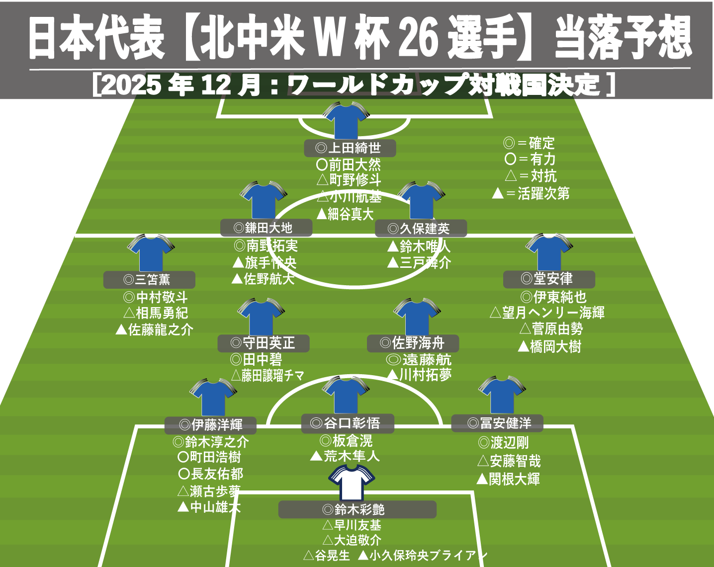【日本代表】北中米W杯メンバー26人予想。久保建英や上田綺世ら「当確」、冨安健洋は間に合うか!? 当落線上にいるのは…