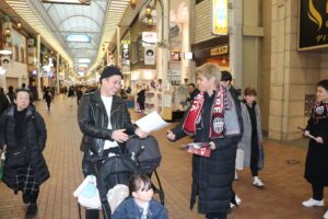 「頑張ってね」「試合見に行きます」神戸がACLの大一番FCソウルとの第2戦に向けてチラシ配布。ゴールが期待される小松蓮ら選手も参戦