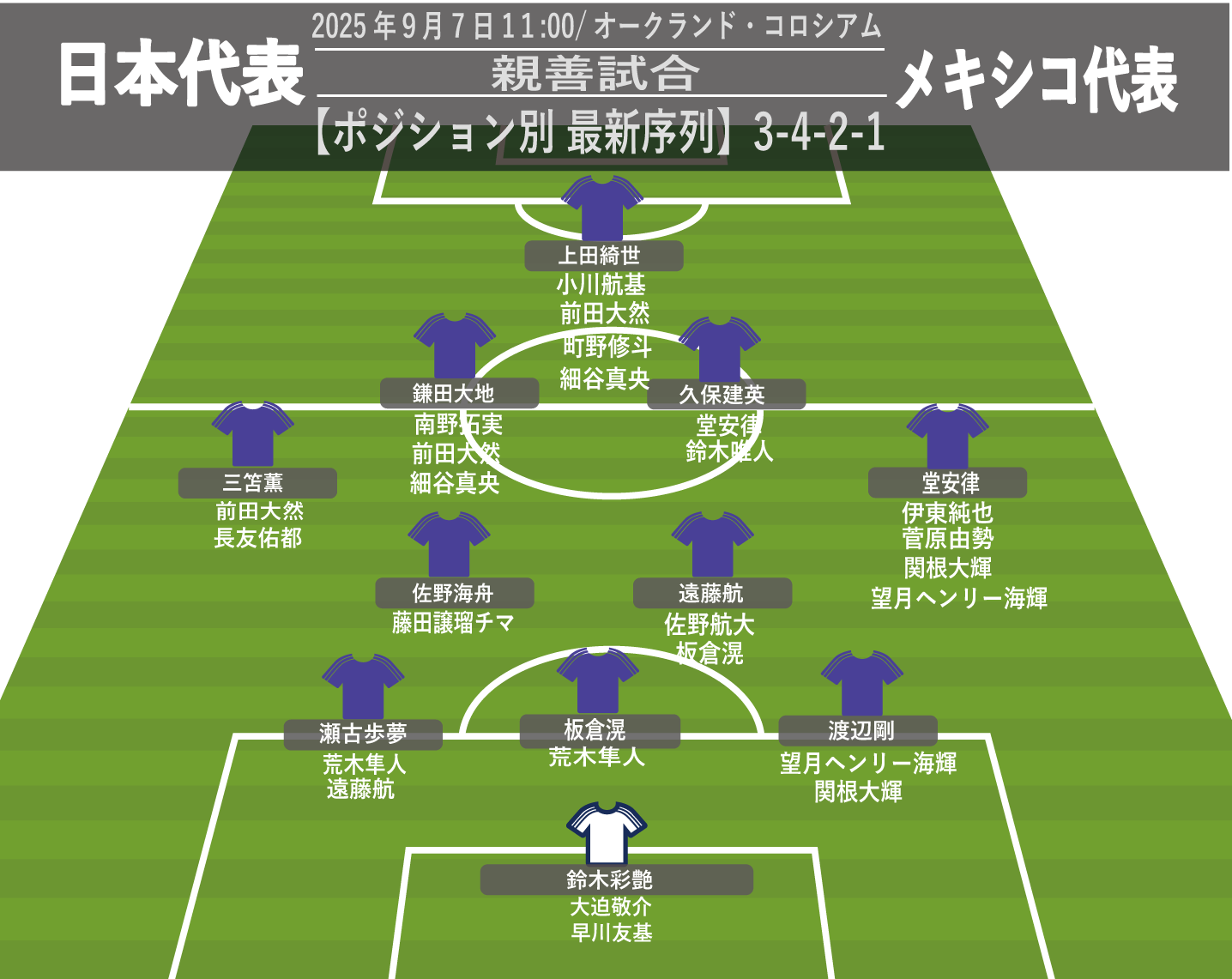 [親善試合]メキシコ代表 – 日本代表/2025年9月7日11:00(現地6日)/オークランド・コロシアム(米国)