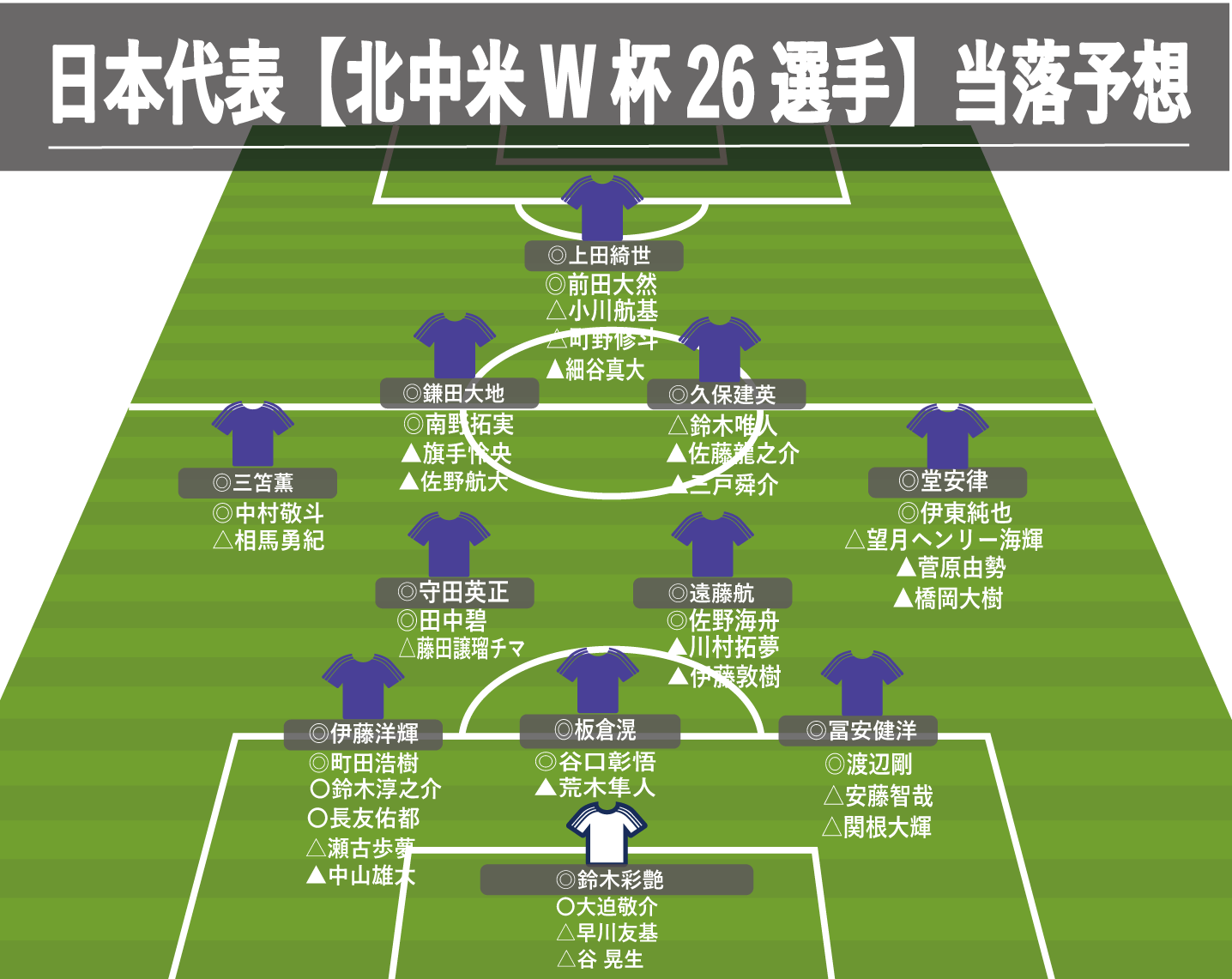北中米ワールドカップ(W杯)まであと8か月、ひと足早いが……北中米W杯26選手の最新の当落予想をしたい。