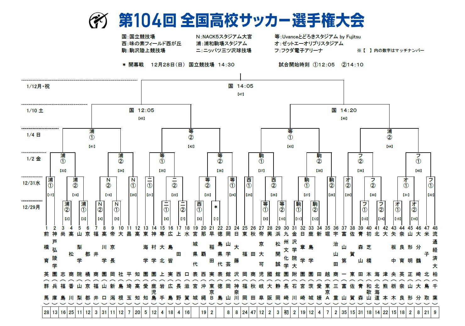 第104回全国高校サッカー選手権大会の組み合わせ抽選会が11月17日に行われた。1回戦で山梨学院vs京都橘、2回戦で米子北vs流通経済大柏高といった好カードが早くも組まれた。