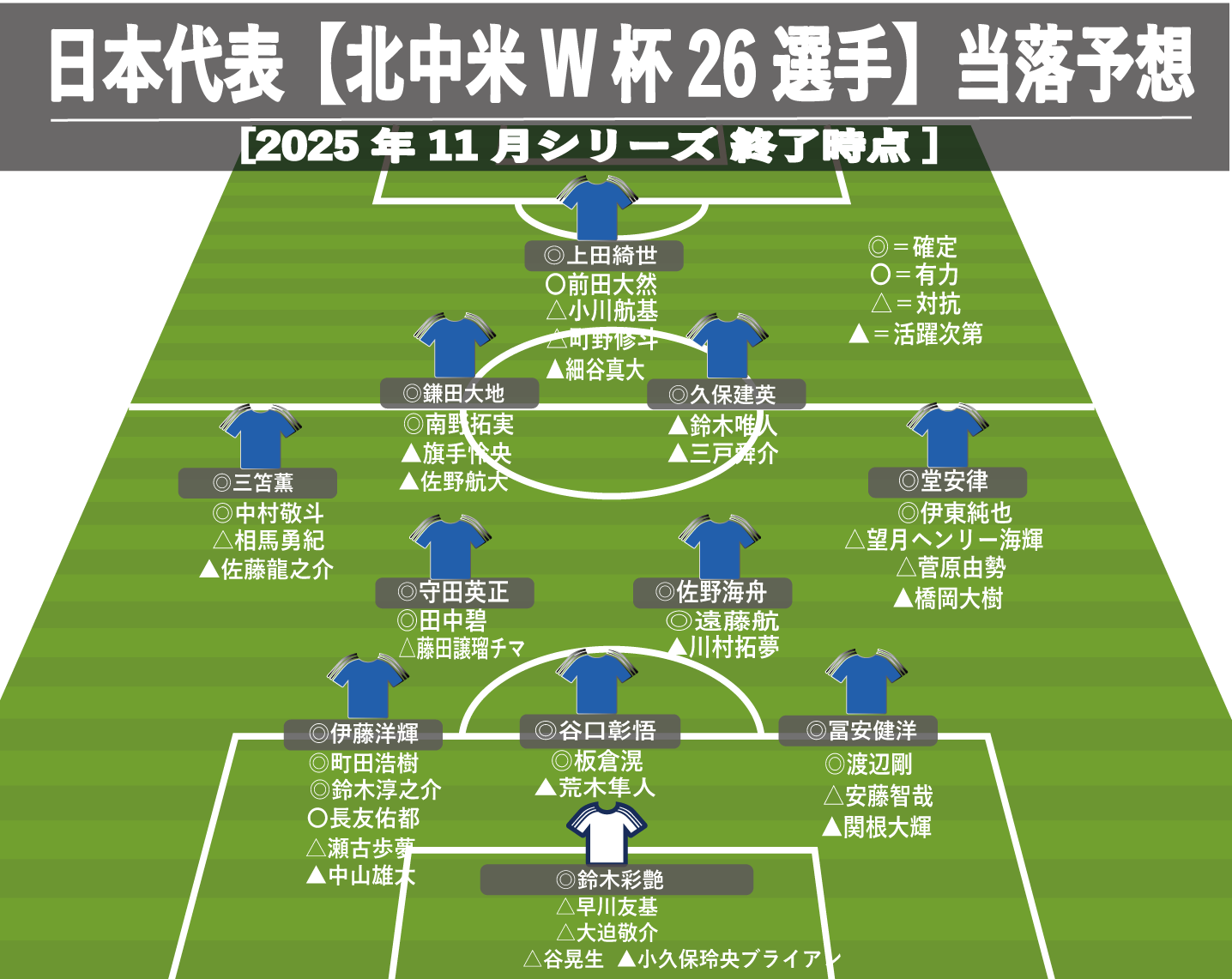 あと半年と迫った北中米ワールドカップ(W杯)に臨むメンバー26選手の当落予想をしたい。