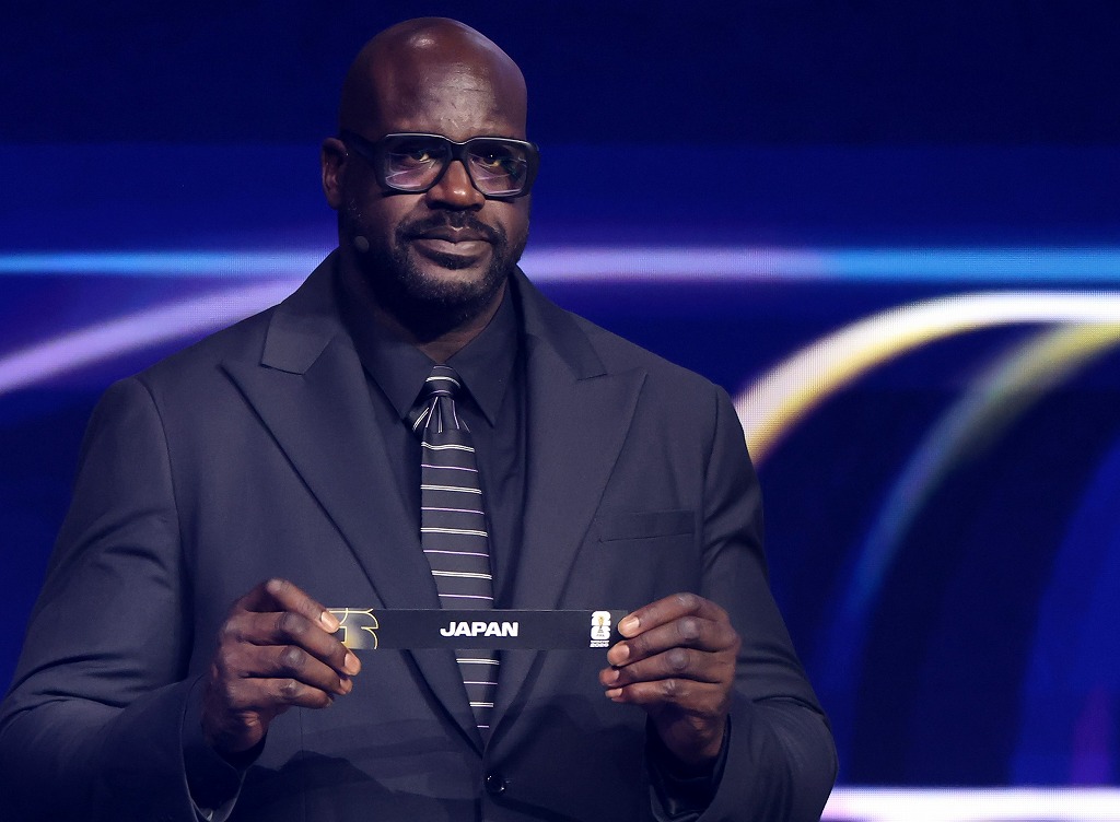 W杯抽選会、オニール氏が「JAPAN」のくじを引く。 (Photo by Hector Vivas - FIFA/FIFA via Getty Images)