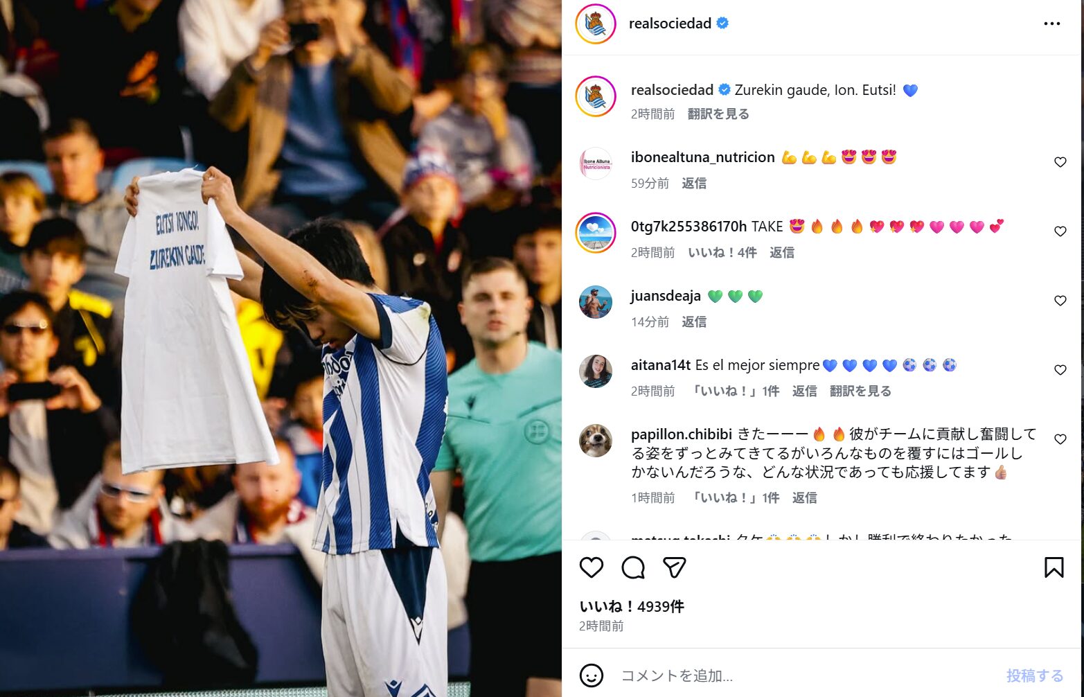 同メディアによると、これはレアル・ソシエダの栄養士イオン・ゴメス氏へのエールだったそうだ。このTシャツが「クラブ内の結束とサポートの意思を象徴するもの」だったと指摘している。また『AS』によると、リザーブチームのスタッフであるゴメス氏は現在、苦しい闘病生活を強いられ「辛い時期にある」ということだ。