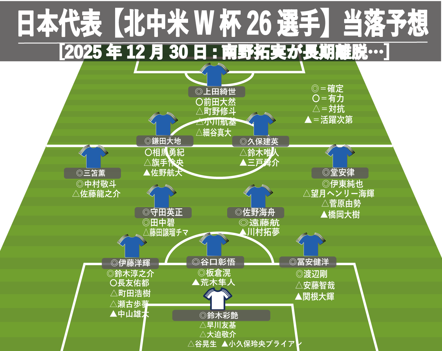 北中米W杯に臨むメンバー26選手の当落予想をまとめた。