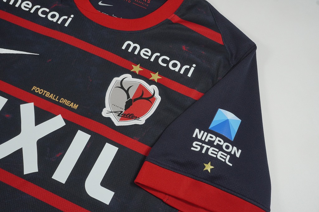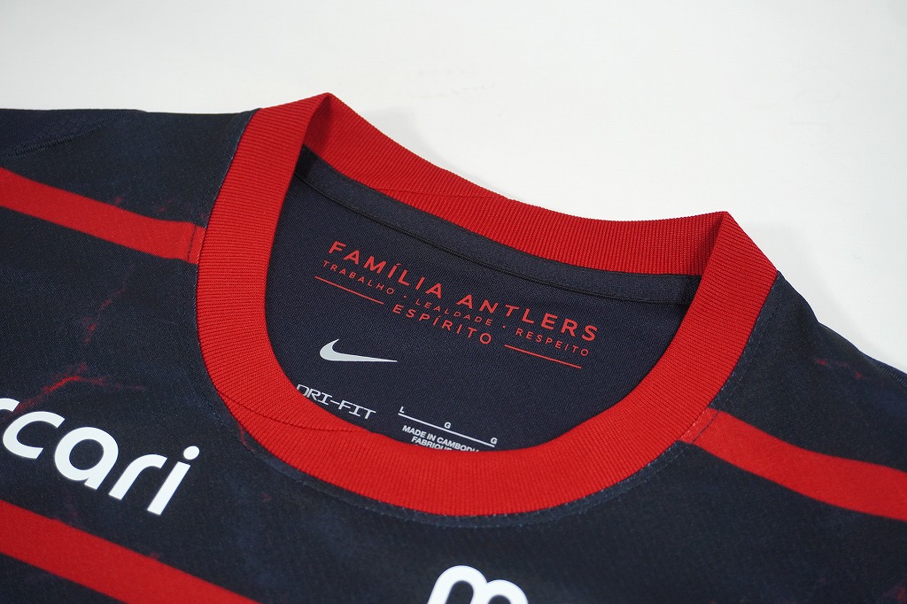 首裏には、アントラーズファミリーの精神を示すジーコスピリット「TRABALHO(献身)」「LEALDADE(誠実)」「RESPEITO(尊重)」を刻印。エンブレムはワッペン仕様、20冠を示すチャンピオンスターは転写シートで表現され、21冠目のスターは袖口に配置されている。背番号とネームは、NIKEのオリジナルフォントを継続採用した。