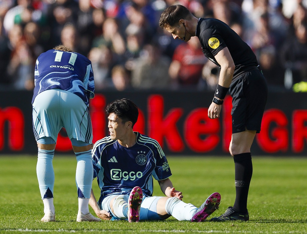 日本代表に不安…冨安健洋が負傷交代。大腿部を押さえて立ち上がれず、上田綺世も話しかける。フェイエノールト1-1アヤックス